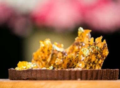 - Add the butter slowly ensuring it has been completely incorporated into the mixture. Pipe directly into the peanut shortbread tart shell and ensure it is filled half way (roughly 180g).